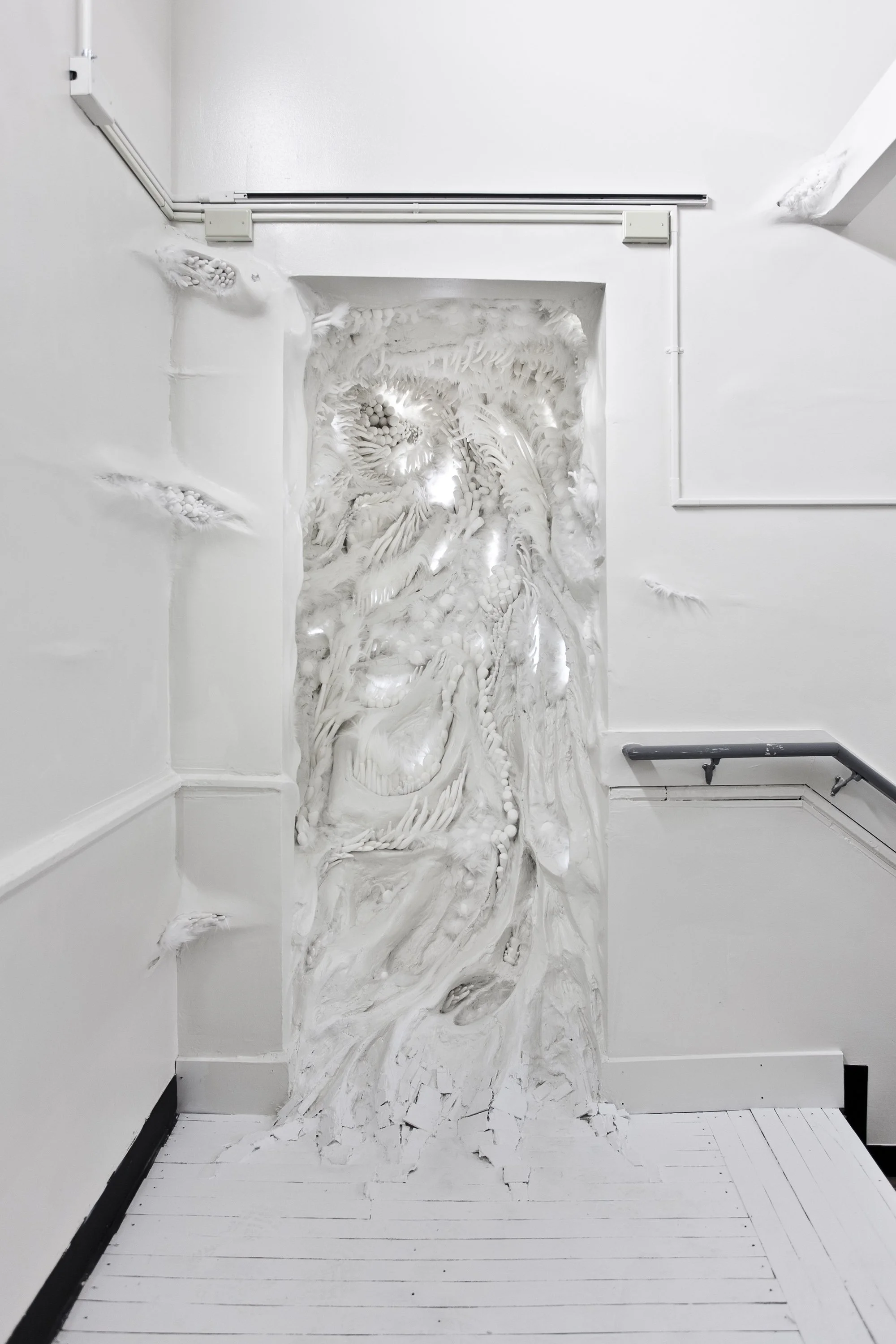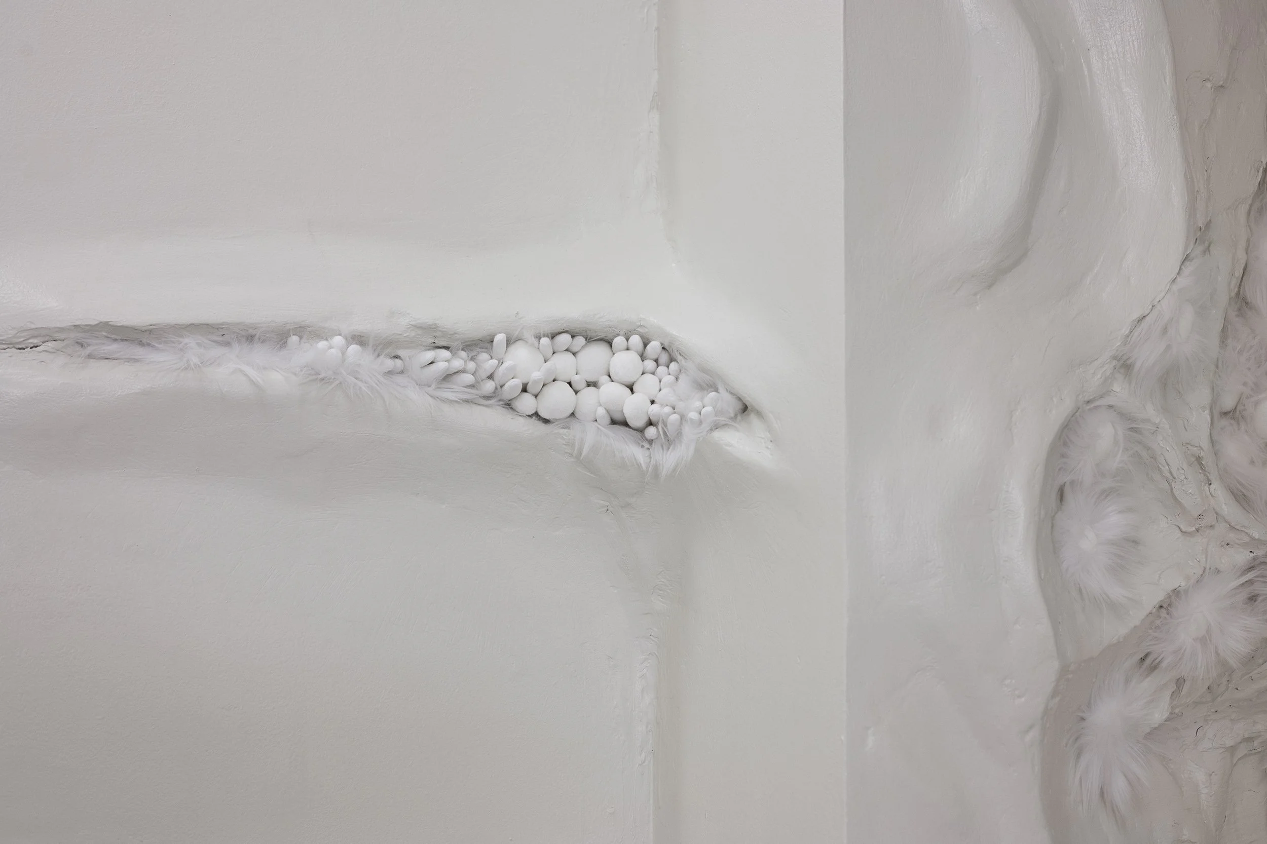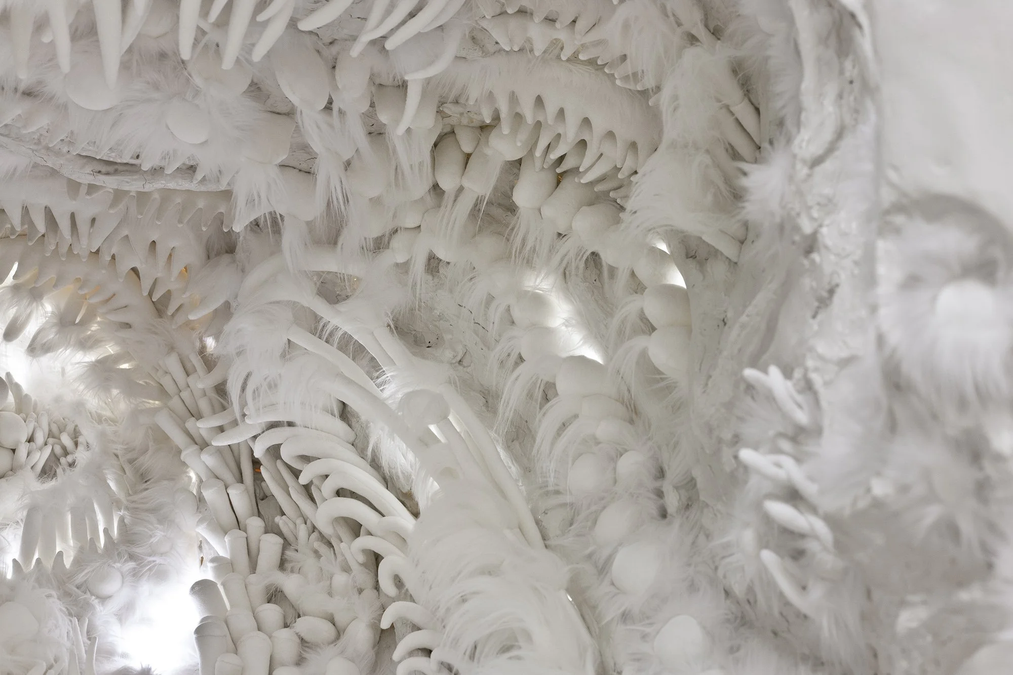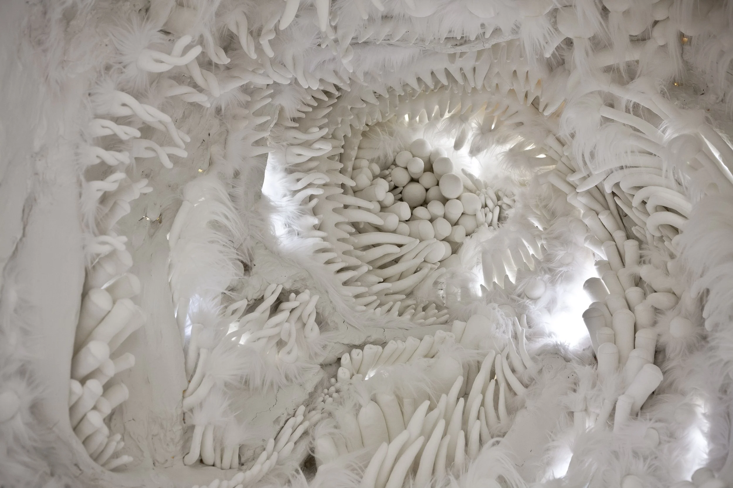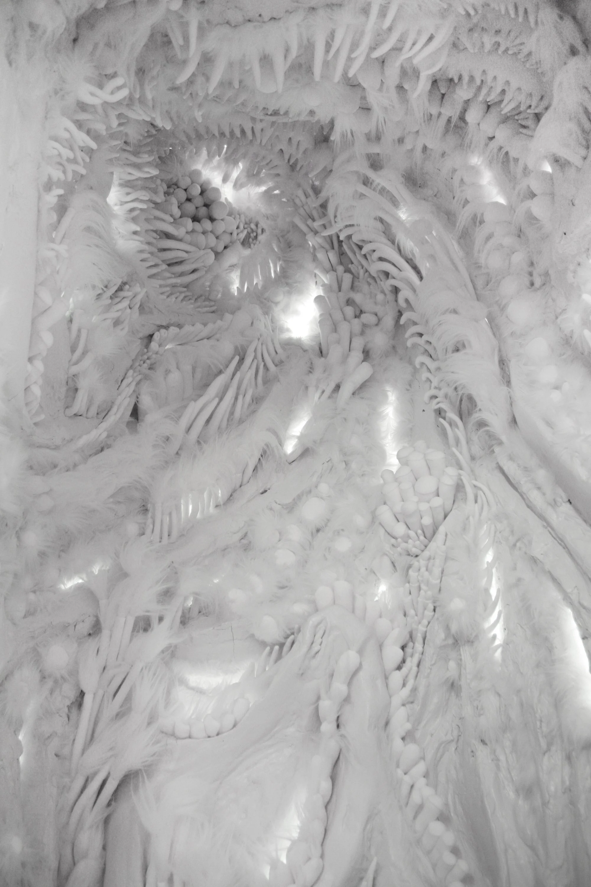 Nanotecture is a collaborative work between myself and sculptor Jonathan Latiano, a site-specific installation created at School 33 Art Center as part of the Co-Lab(oration) project and funded by the Robert Rauschenberg Foundation. This project created a new gallery space at the School 33 Art Center in what was once a telephone booth. Velour, faux fur, recycled t-shirts, polyester stuffing, wood, foam, joint compound, paint, fans, and lights. 2013