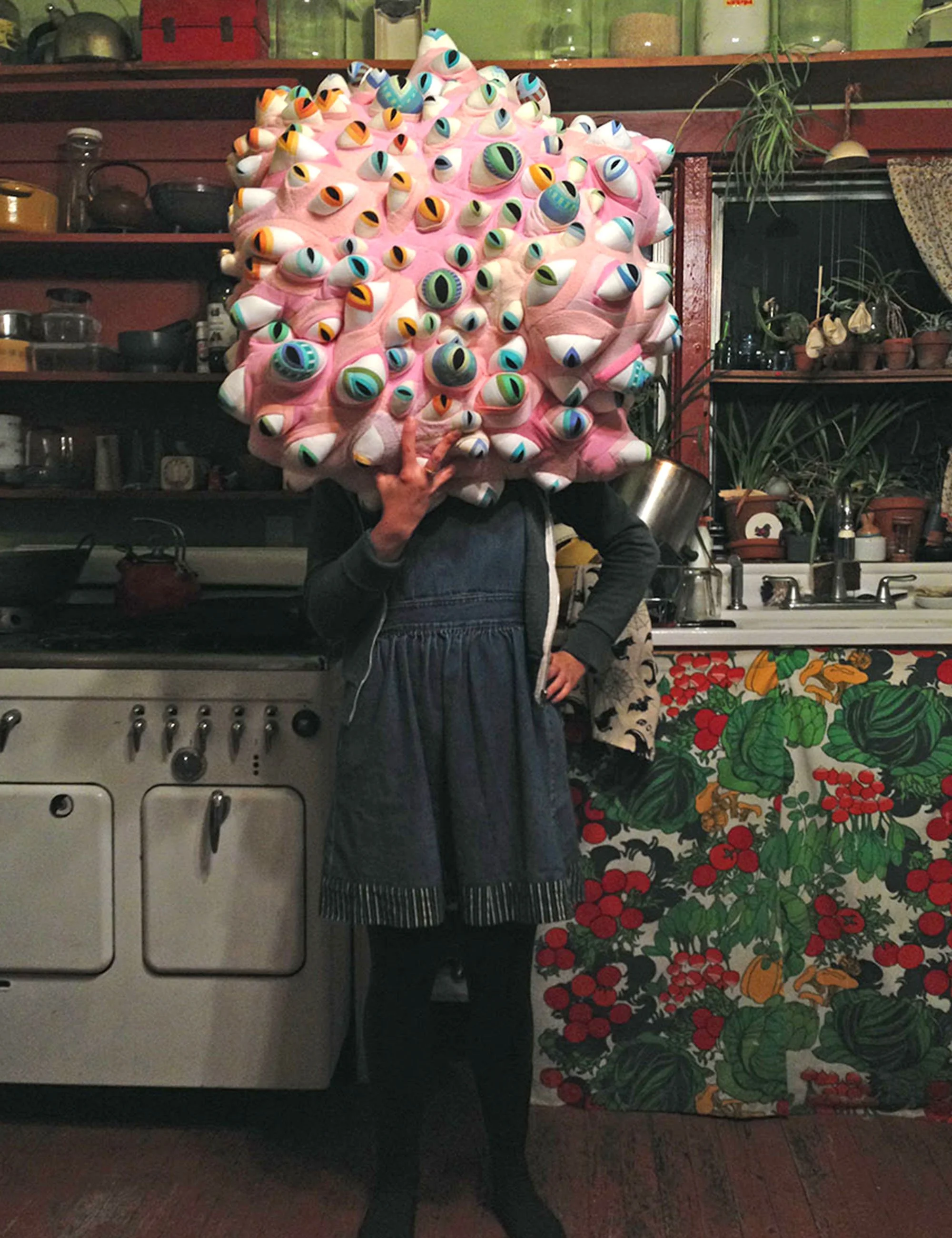 This piece began as a tiny installation for the Minstallation Gallery at Creative Alliance in Baltimore. In 2009, Growth grew with more eyeballs and the addition of tentacles for display at Knitwit at Nudashank Gallery. In 2015, the tentacles were removed and more eyeball masses were sewn on for its display in Monstalgia at Arizona State University School of Art. I hope to get to add on to it again… Recycled clothing & linens with polyester stuffing and cardboard armature. 2008-2015